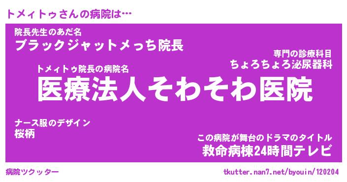 | 自動車の名前っぽいあだ名 | 『トメティマ』『トクア』『トント』 |