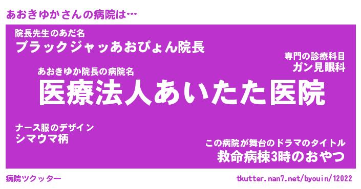 | 伝説のあだ名 | 『封印されしスナイパーあおきゆか』 |