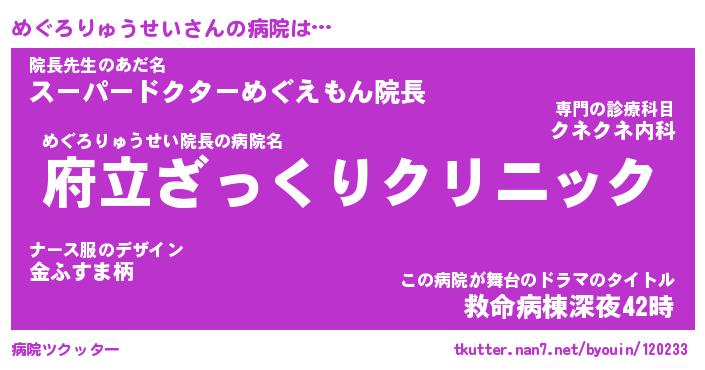 | 肩書あだ名 | 『めぐろりゅうせい御曹司』 |
