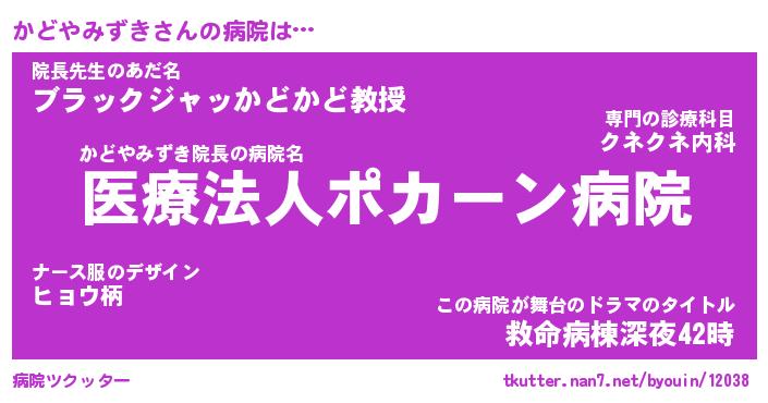 | ポケモン風あだ名 | 『カドチュウ』『カドヤダネ』 |