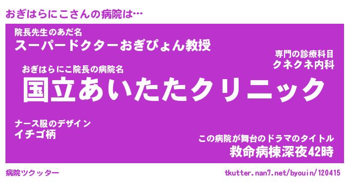 | 2回繰り返すあだ名 | 『おぎおぎ』『おおぎぎ』『ぬらぬら』 |