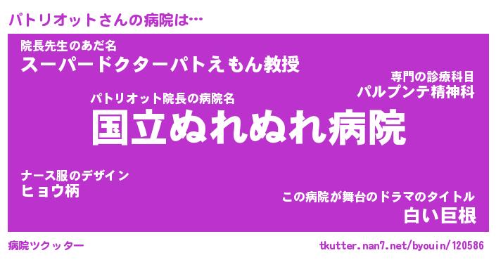 | 男性向けラノベタイトル風あだ名 | 『パトリオットの憂鬱』 |