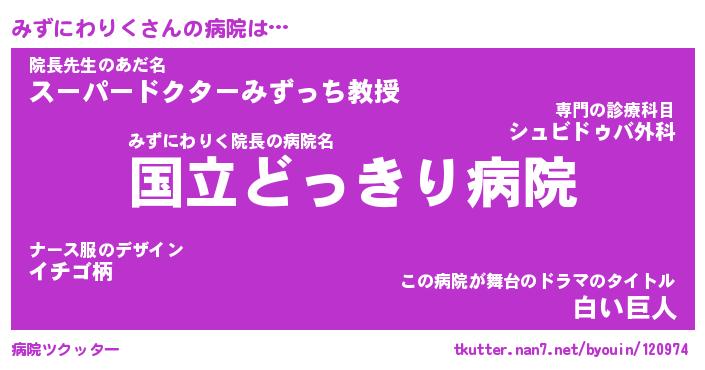 | ヒーロー風カッコイイあだ名 | 『スーパーミズニワリク』『黄金騎士ミズ』 |