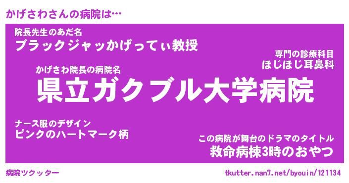 | ヘコむあだ名 | 『かげにゅー』『豆乳』『かげぷりん』 |