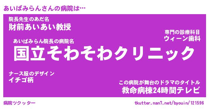 | 胡散臭い通販商品みたいなあだ名 | 『必ず成功するブレスレット…その名も「あいばみらん」』 |