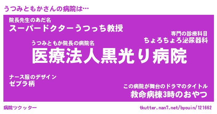 | 胡散臭い通販商品みたいなあだ名 | 『億万長者になれるブレスレット…その名も「うつみともか」』 |