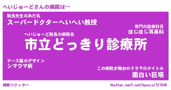 | 胡散臭い通販商品みたいなあだ名 | 『必ず成功する霊験あらたかなお札…その名も「へいじゅーど」』 |