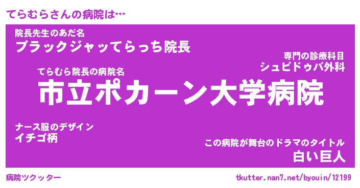 | 男性向けラノベタイトル風あだ名 | 『てらむらの憂鬱』 |