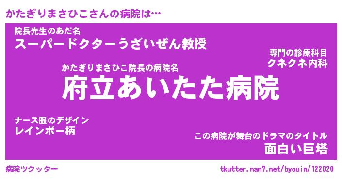 | 肩書あだ名 | 『かたぎりまさひこ御曹司』 |