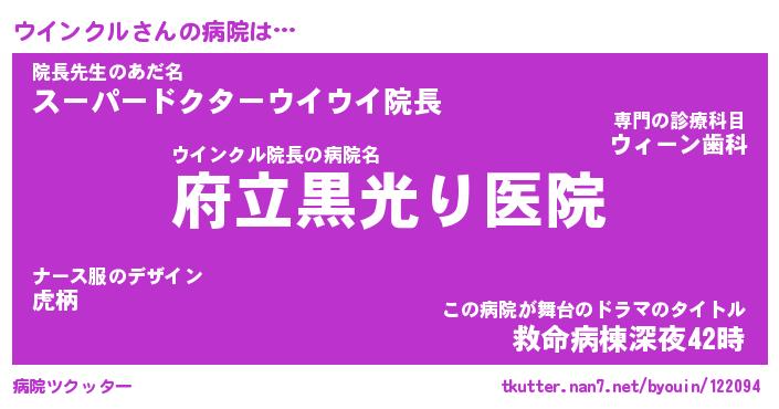 | ヒーロー風カッコイイあだ名 | 『スーパーウインクル』『暗黒騎士ウイ』 |