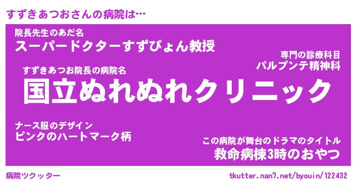 | ヘコむあだ名 | 『すずもー』『豆乳』『すず太郎』 |