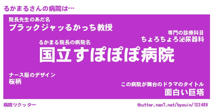 | 男性向けラノベタイトル風あだ名 | 『るかまるの憂鬱』 |
