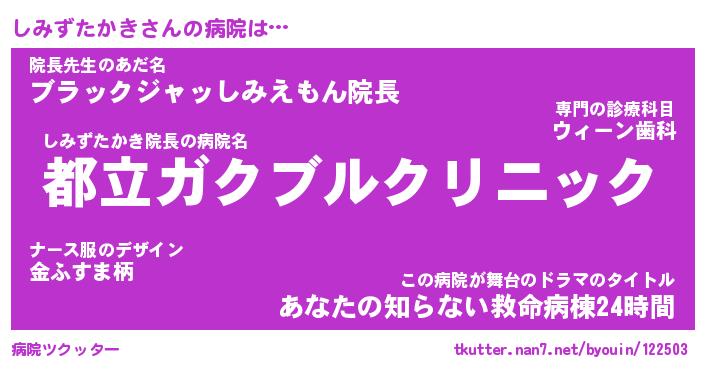 | 肩書あだ名 | 『しみずたかき店長』『しみずたかき先生』 |