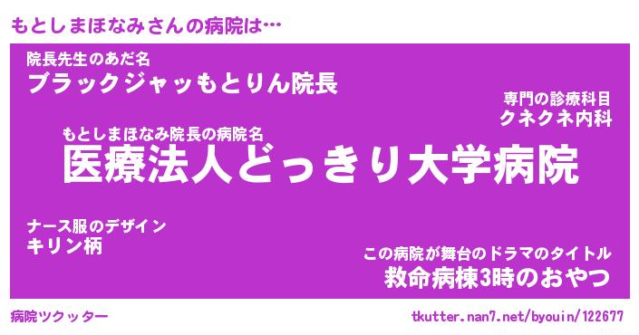 | 恥ずかしいあだ名 | 『プリティーもとしまほなみ』『もとちん』 |