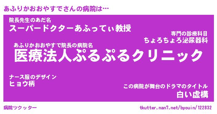 | 肩書あだ名 | 『あふりかおおやすでCEO』 |