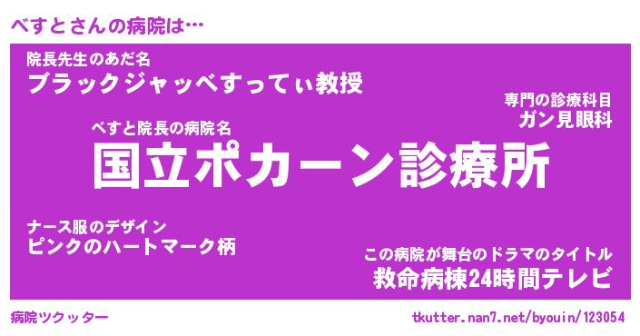 | ポケモン風あだ名 | 『ベスチュウ』『ベストダネ』 |