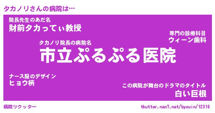| ヘコむあだ名 | 『タカにゅー』『酢こんぶ』 |