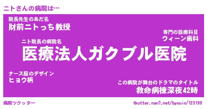 | 2回繰り返すあだ名 | 『ニトニト』『ニニトト』『ねとねと』 |