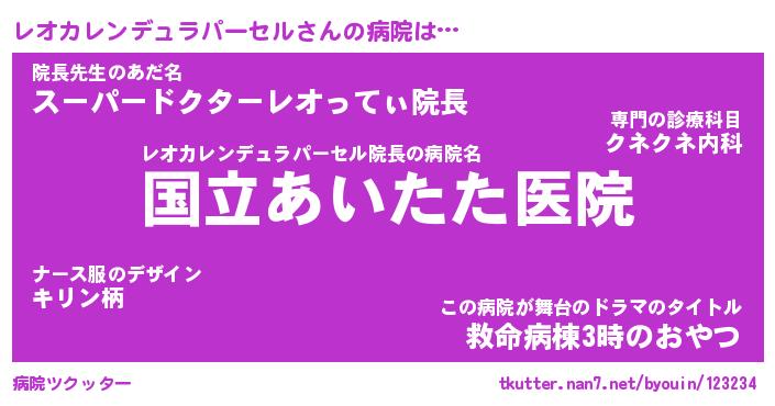 | 2回繰り返すあだ名 | 『レオレオ』『レレオオ』『きこきこ』 |