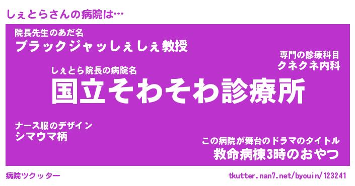 | 意味不明あだ名 | 『ペロリンしぇとら』『永久保存しぇとら』 |