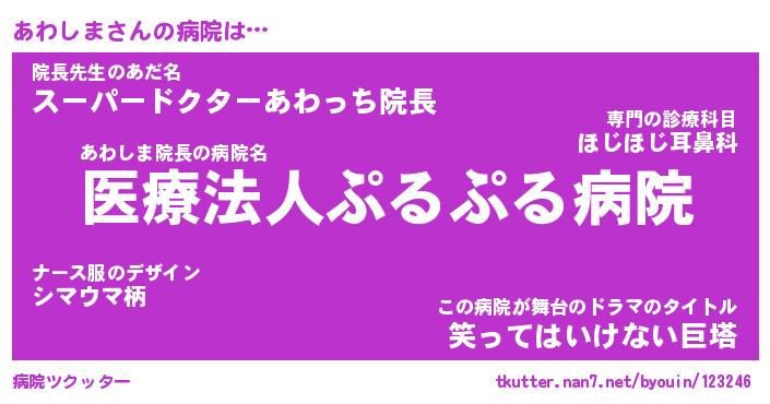 | 意味不明あだ名 | 『ペロリンあわしま』『永久保存あわしま』 |