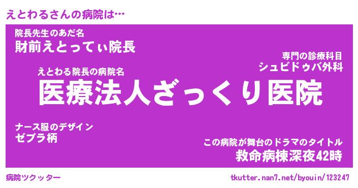 | 意味不明あだ名 | 『ペロリンえとわる』『永久保存えとわる』 |
