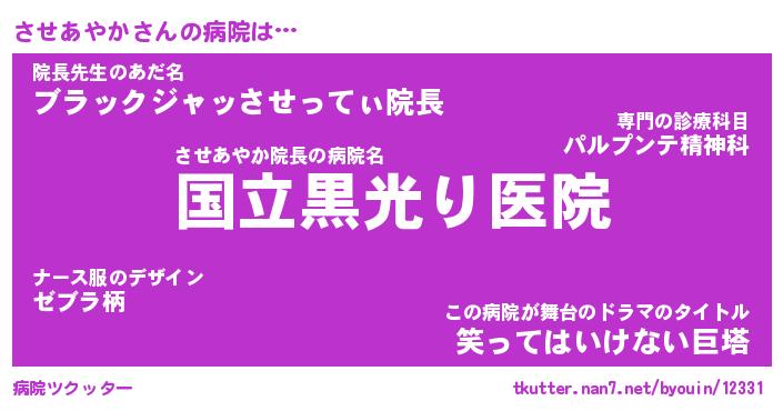 | 恥ずかしいあだ名 | 『プリティーさせあやか』『させっちょ』 |