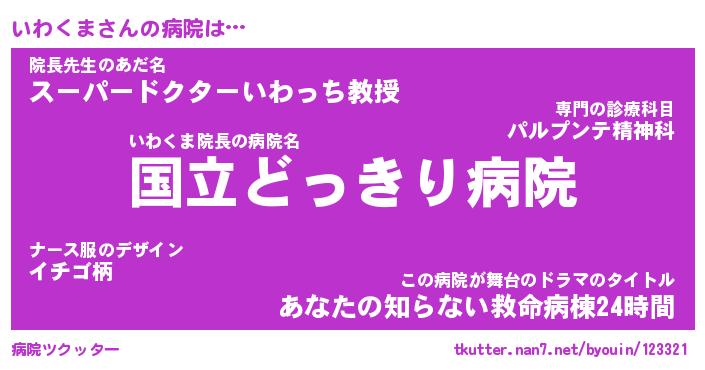 | 意味不明あだ名 | 『ペロリンいわくま』『永久保存いわくま』 |