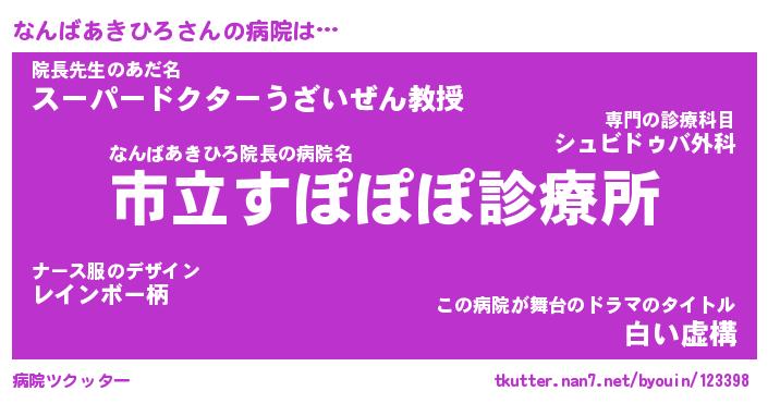 | 伝説のあだ名 | 『伝説のスナイパーなんばあきひろ』 |