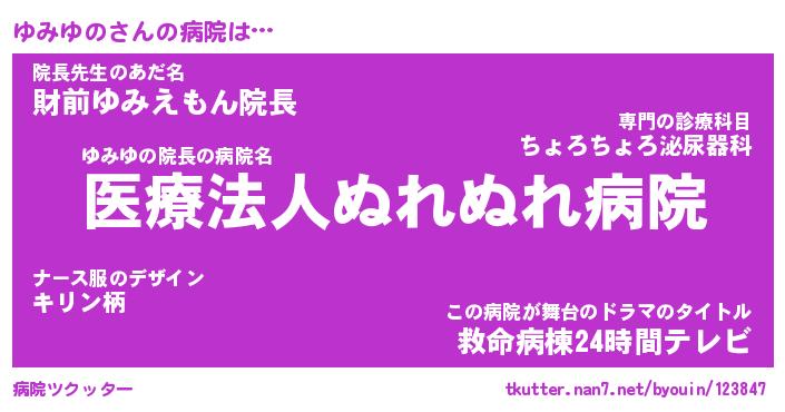| 肩書あだ名 | 『ゆみゆの社長令嬢』『ゆみゆの大統領』 |