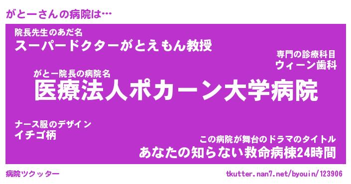 | 肩書あだ名 | 『がとー店長』『がとー総理大臣』 |