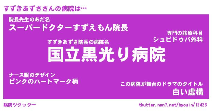| 肩書あだ名 | 『すずきあずさ社長』『すずきあずさ班長』 |