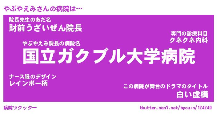 | ヒーロー風カッコイイあだ名 | 『スーパーヤブヤエミ』『炎刃騎士ヤブ』 |
