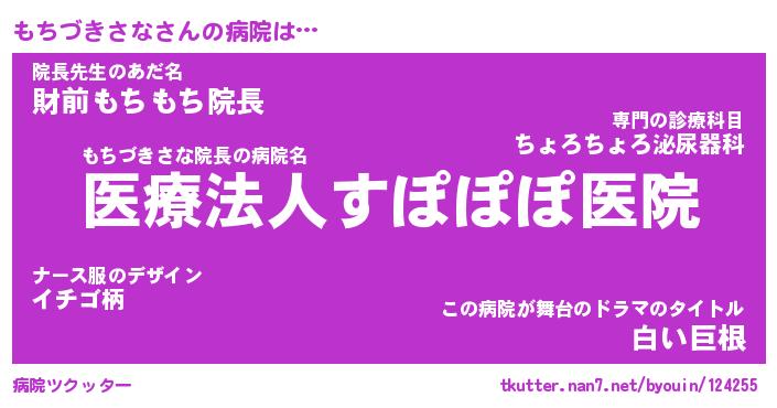 | 2回繰り返すあだ名 | 『もちもち』『ももちち』『ぷりぷり』 |