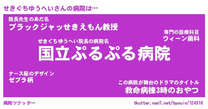 | 女子向けラノベタイトル風あだ名 | 『(仮)せきぐちゆうへいのやんごとなき事情』 |