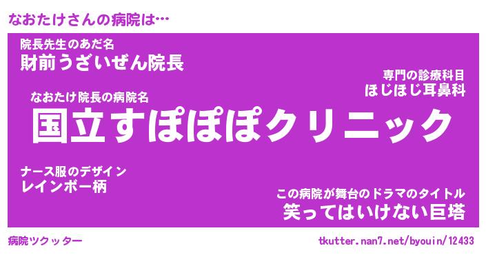| 胡散臭い通販商品みたいなあだ名 | 『必ず成功する霊験あらたかなお札…その名も「なおたけ」』 |