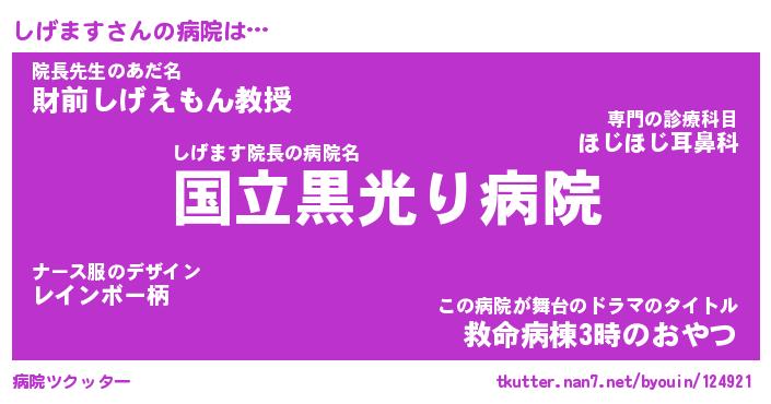 | 2回繰り返すあだ名 | 『しげしげ』『ししげげ』『ぬめぬめ』 |