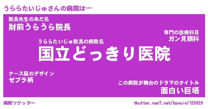 | 伝説のあだ名 | 『伝説のスナイパーうららたいじゅ』 |