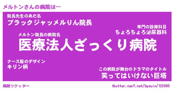 | 意味不明あだ名 | 『ペロリンメルトン』『永久保存メルトン』 |