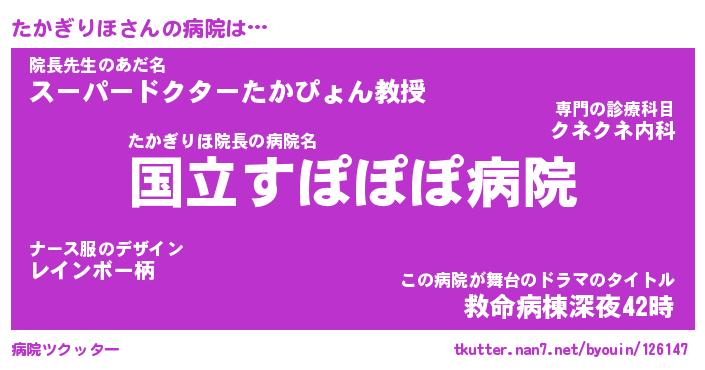 | 恥ずかしいあだ名 | 『プリティーたかぎりほ』『たかっちょ』 |