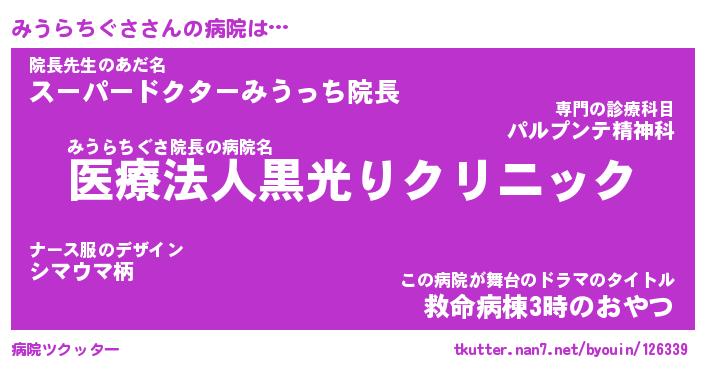 | ヒーロー風カッコイイあだ名 | 『スーパーミウラチグサ』『暗黒騎士ミウ』 |