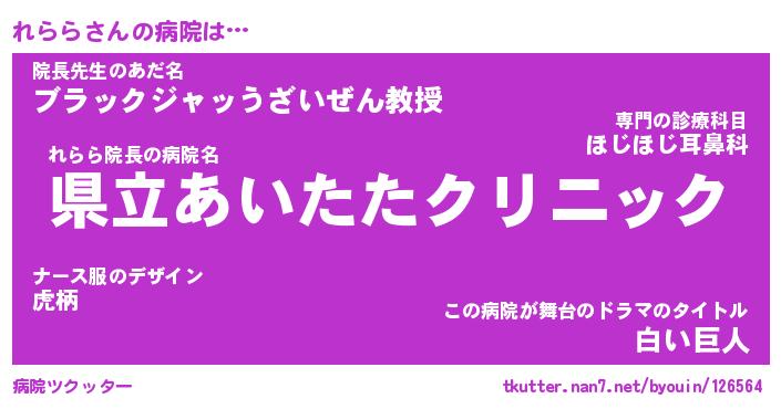 | ヘコむあだ名 | 『れらっふぃ~』『豆乳』『れらお』 |