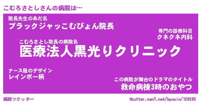 | ヒーロー風カッコイイあだ名 | 『スーパーコムロサトシ』『暗黒騎士コム』 |