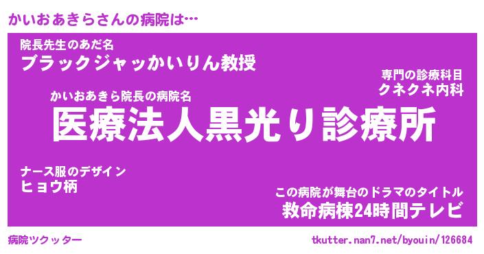 | 肩書あだ名 | 『かいおあきら社長』『かいおあきら教頭』 |