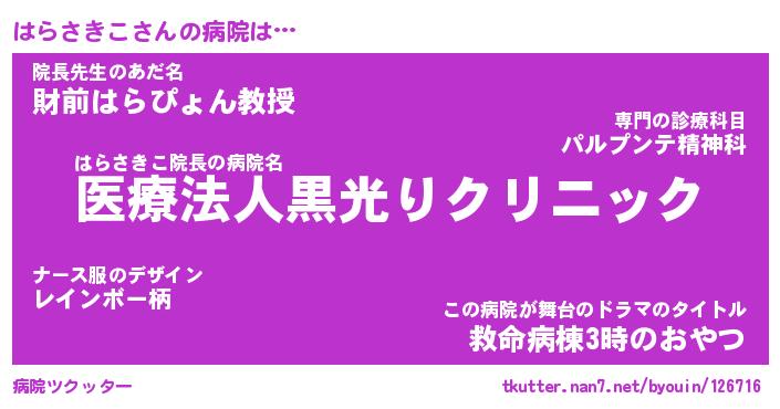 | ヒーロー風カッコイイあだ名 | 『スーパーハラサキコ』『天弓騎士ハラ』 |
