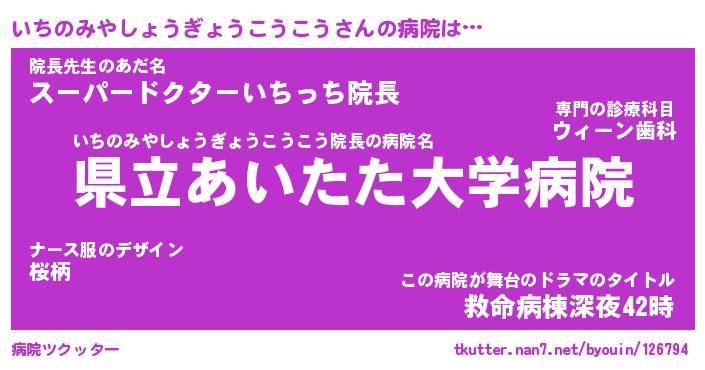 | 意味不明あだ名 | 『ペロリンいちのみやしょうぎょうこうこう』 |