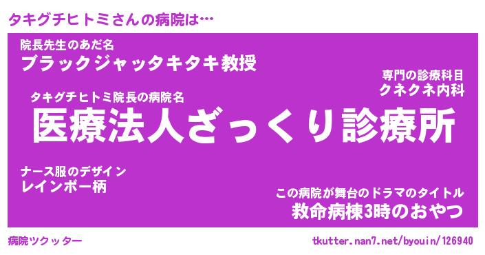 | ヒーロー風カッコイイあだ名 | 『スーパータキグチヒトミ』 |
