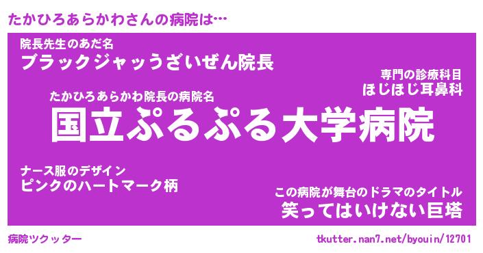 | 男性向けラノベタイトル風あだ名 | 『たかひろあらかわの憂鬱』 |