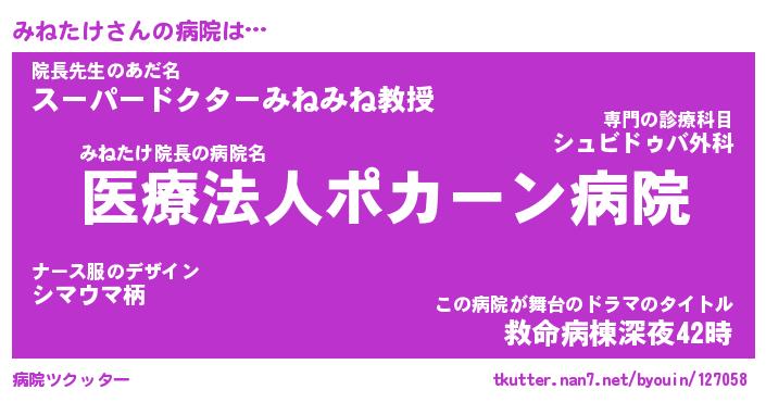 | 意味不明あだ名 | 『ペロリンみねたけ』『永久保存みねたけ』 |