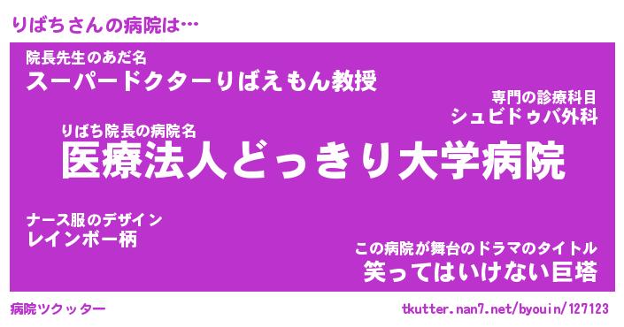 | ヒーロー風カッコイイあだ名 | 『スーパーリバチ』『ウルトラりばちマン』 |